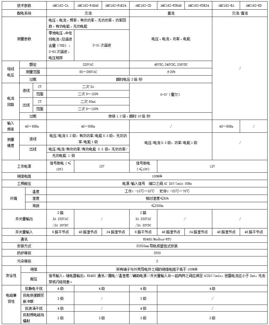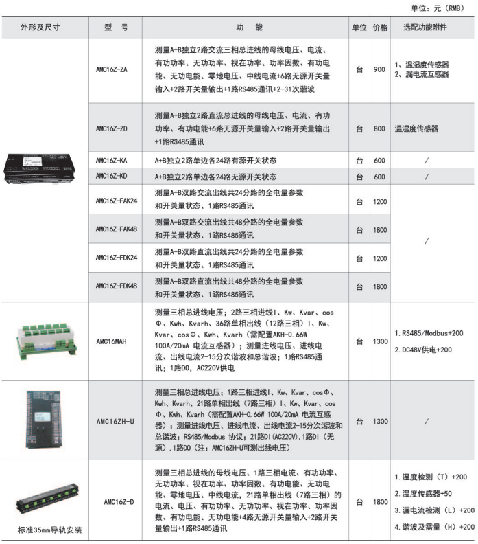 具體型號(hào):AMC16B-3E32. AMC16系列數(shù)據(jù)中心能耗監(jiān)測(cè)裝置
