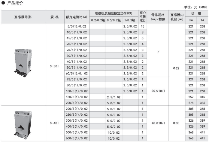 S-40I 200/5(1)/0.02   5.0/0.02   1 40×10/1 φ30 C,F