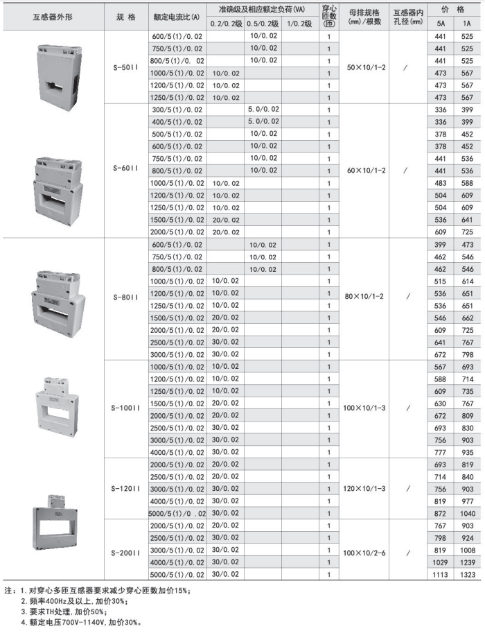 S-60Ⅱ 300-400/5(1)/0.02   5.0/0.02   1 60×10/ 1-2 / C