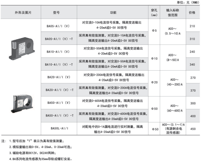 BA50-AI   測量范圍   AC 0~(60~600)A