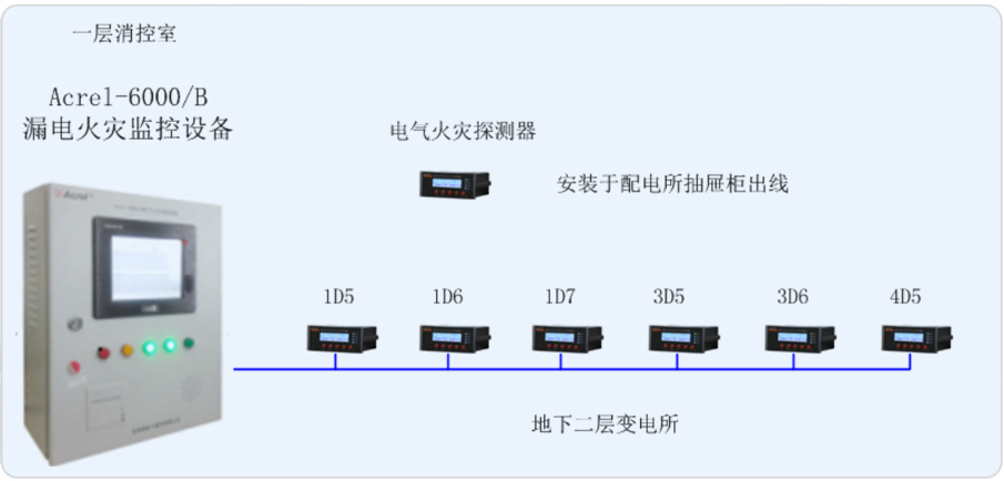 交通飯店有一個變電所,位于地下二層。變電所負責負一層超市以及地上樓層部分的用電?,F(xiàn)為本項目設計一套漏電火災系統(tǒng),由此來實時監(jiān)測變電所內(nèi)重要回路的漏電流,以確保變電所配電系統(tǒng)的電氣安全。