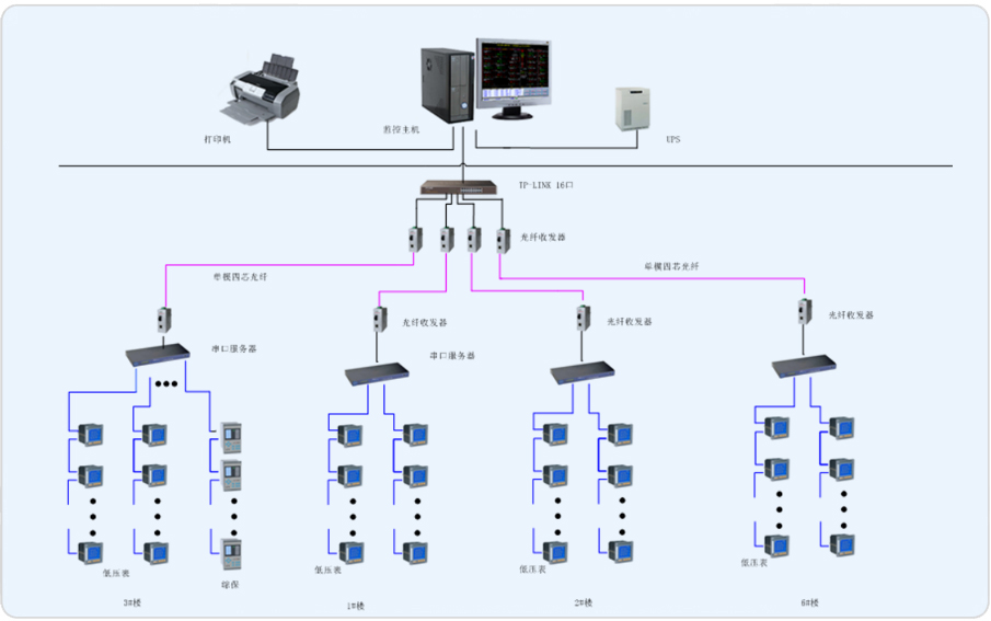 本次項(xiàng)目為制造工程技術(shù)大樓的電力監(jiān)控系統(tǒng)。通過利用原本已安裝的智能儀表,將原非智能儀表更換為智能儀表。通過組建系統(tǒng)網(wǎng)絡(luò),實(shí)時(shí)監(jiān)測(cè)變電所內(nèi)各個(gè)回路的電流、電壓、功率、開關(guān)狀態(tài)等電參量,由此達(dá)到變電所少人值守或無人值守的智能化管理。